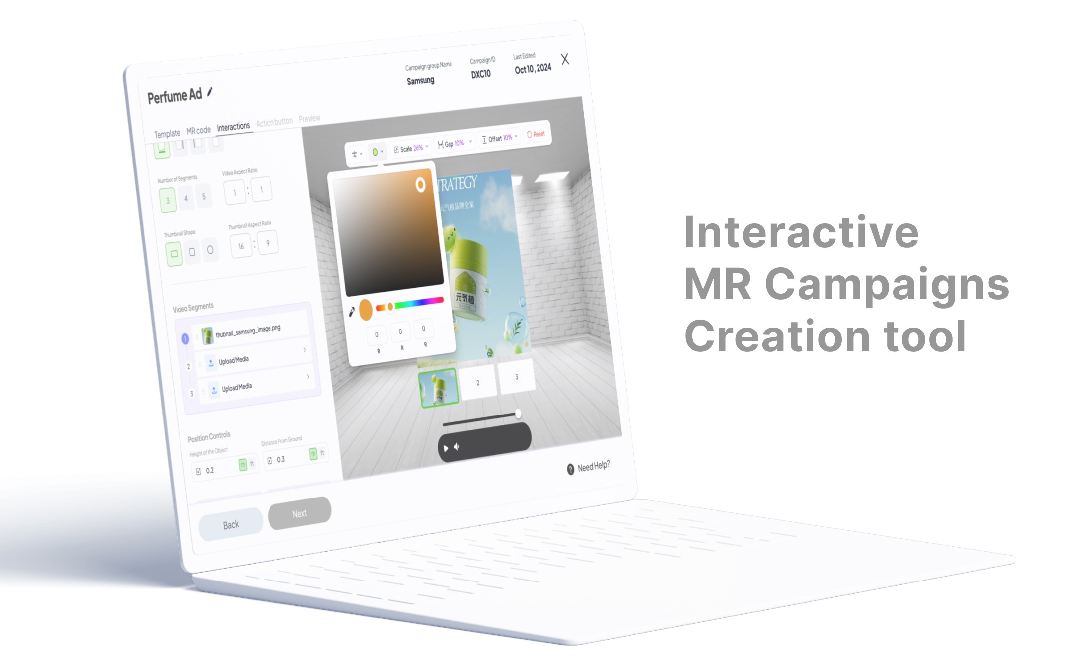 Brands build these experiences through the web tool — no 3D knowledge needed. Stripped down to three steps so any marketing team can use it.