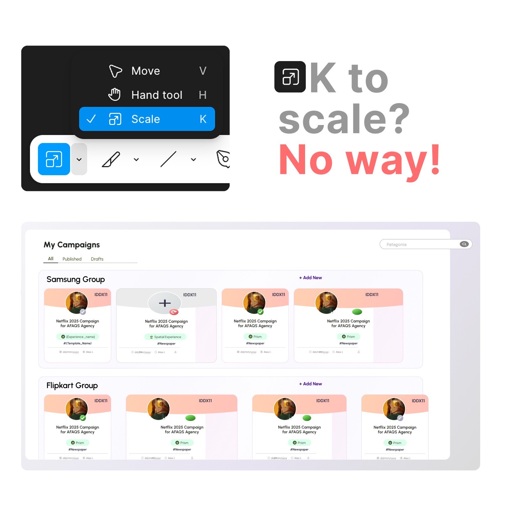 Standard design stops at 1440px. But Flam's real users — brand managers, agency teams — present on large screens during client meetings. At 2K and 4K, the layout stretched. Empty sidebars. Text too small. A product that looked unfinished exactly when it mattered most.