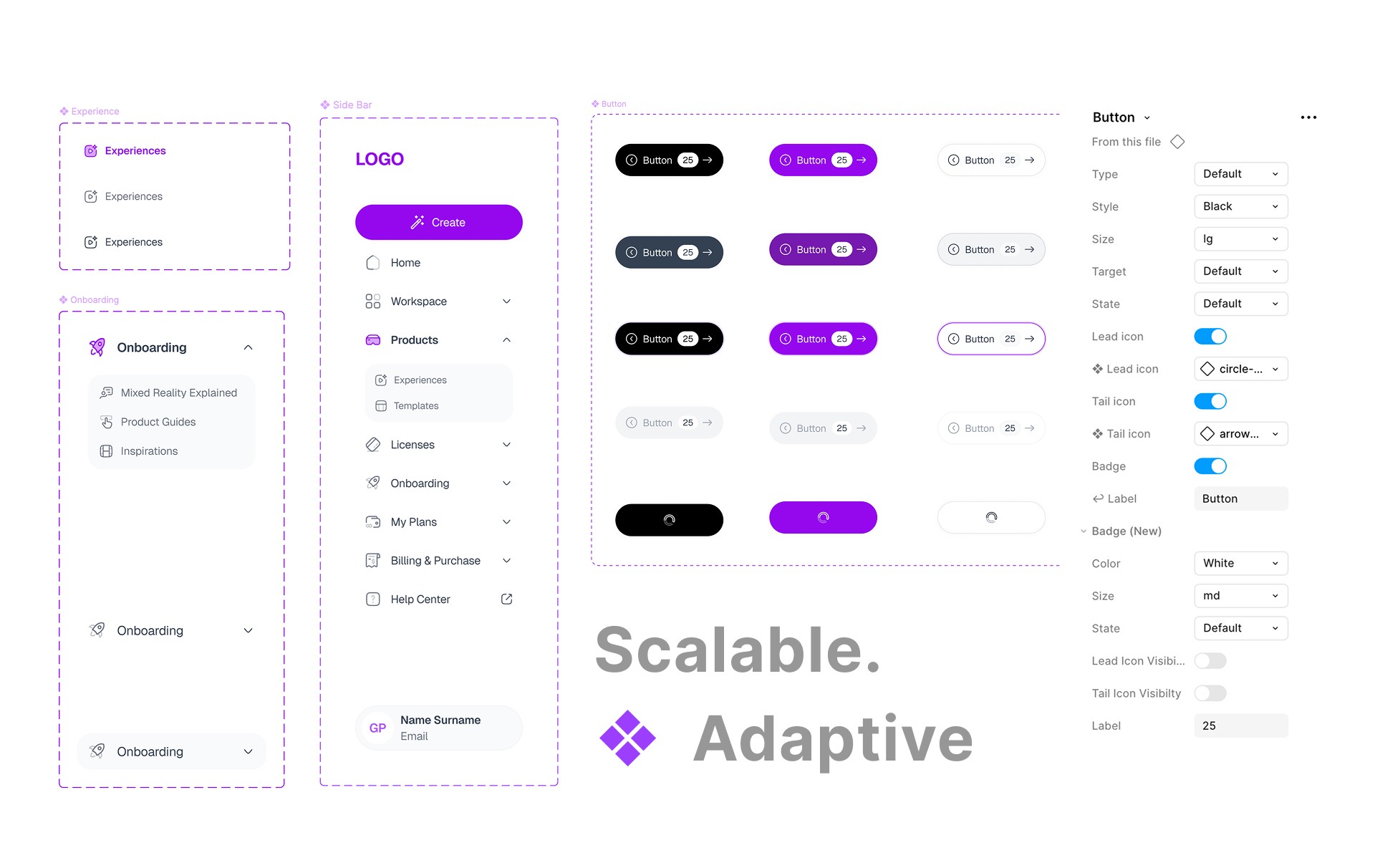 Built from necessary components first. Every component is autolayout-friendly, with all states and variants. Nothing floating, nothing disconnected.
