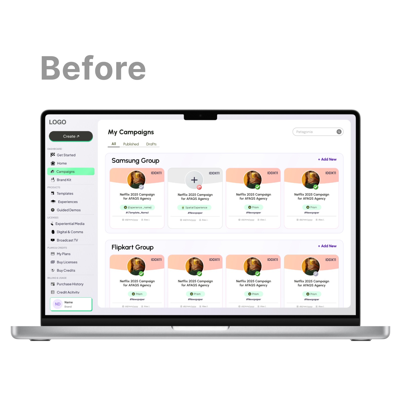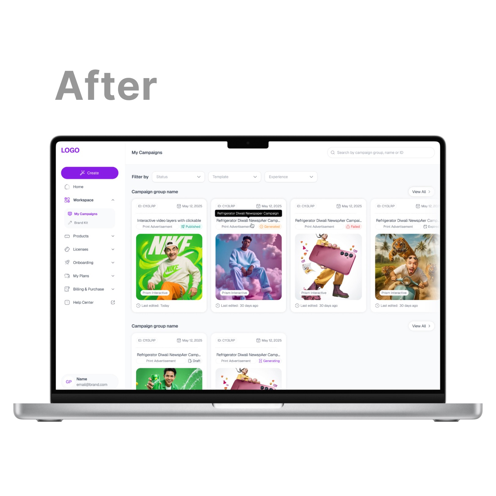 Brands build and manage their MR campaigns here. From uploading content to publishing — all self-serve.